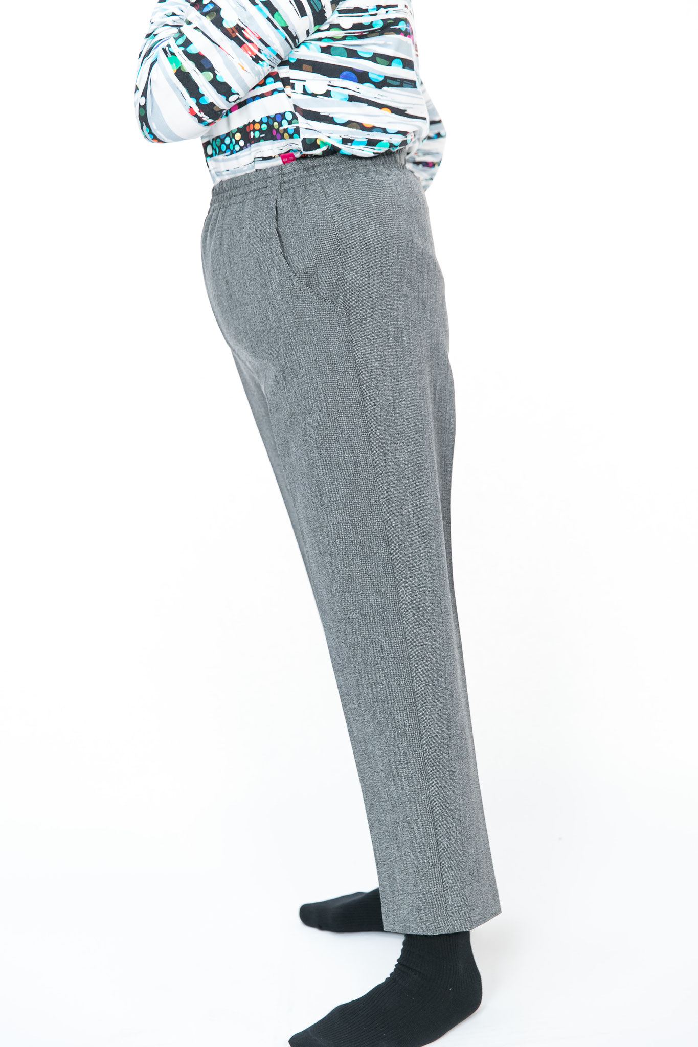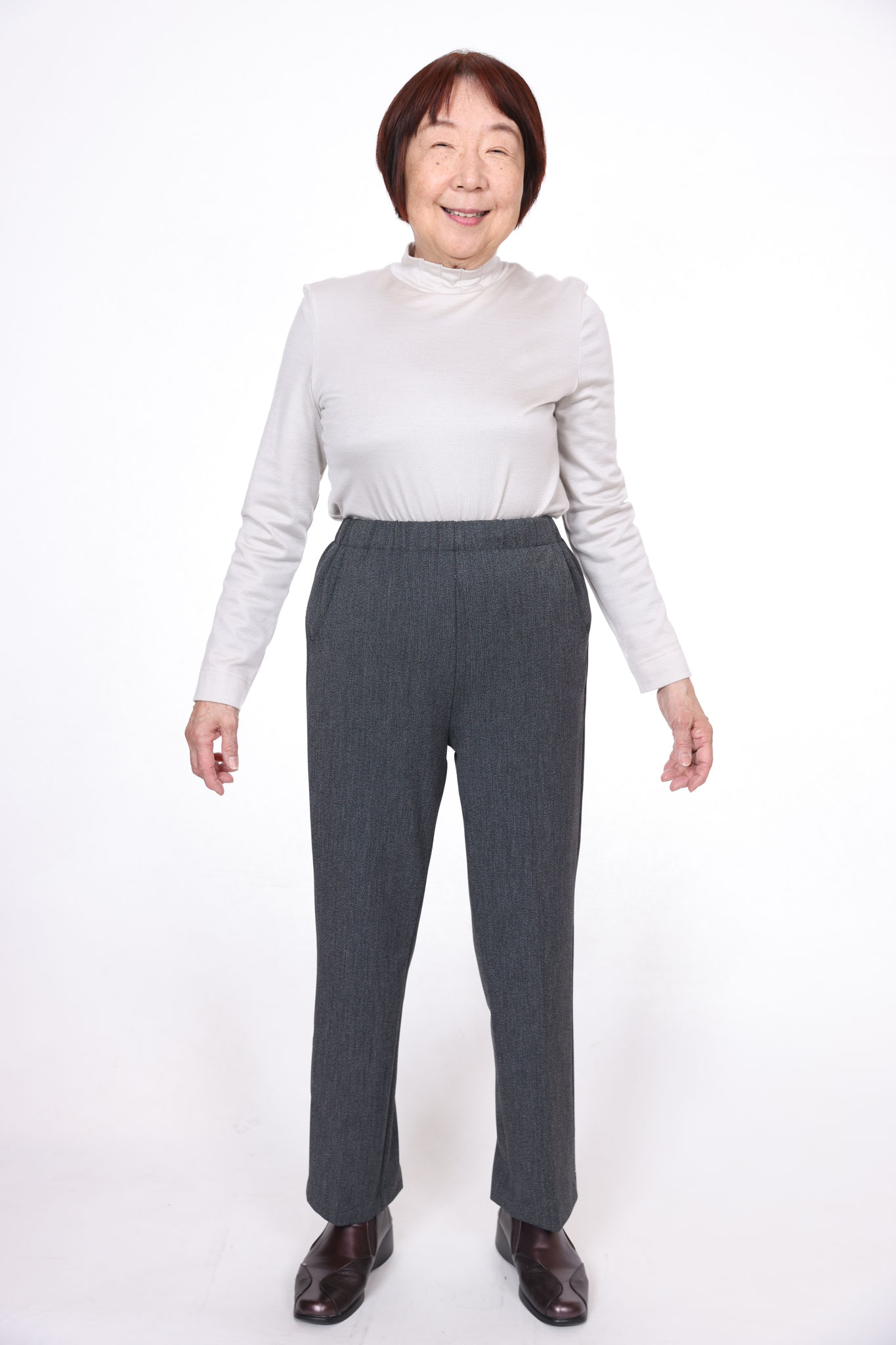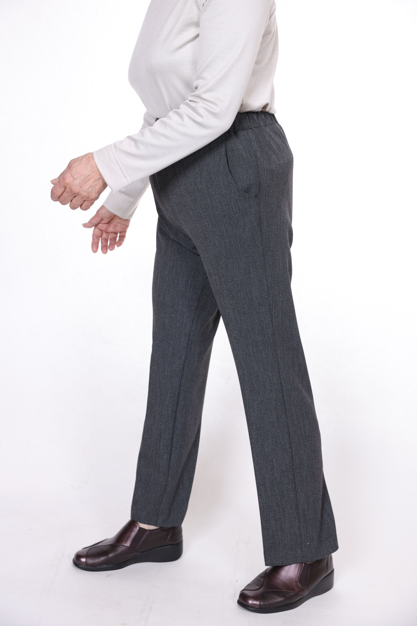 シニア向け丈詰め不要寸パンツ。