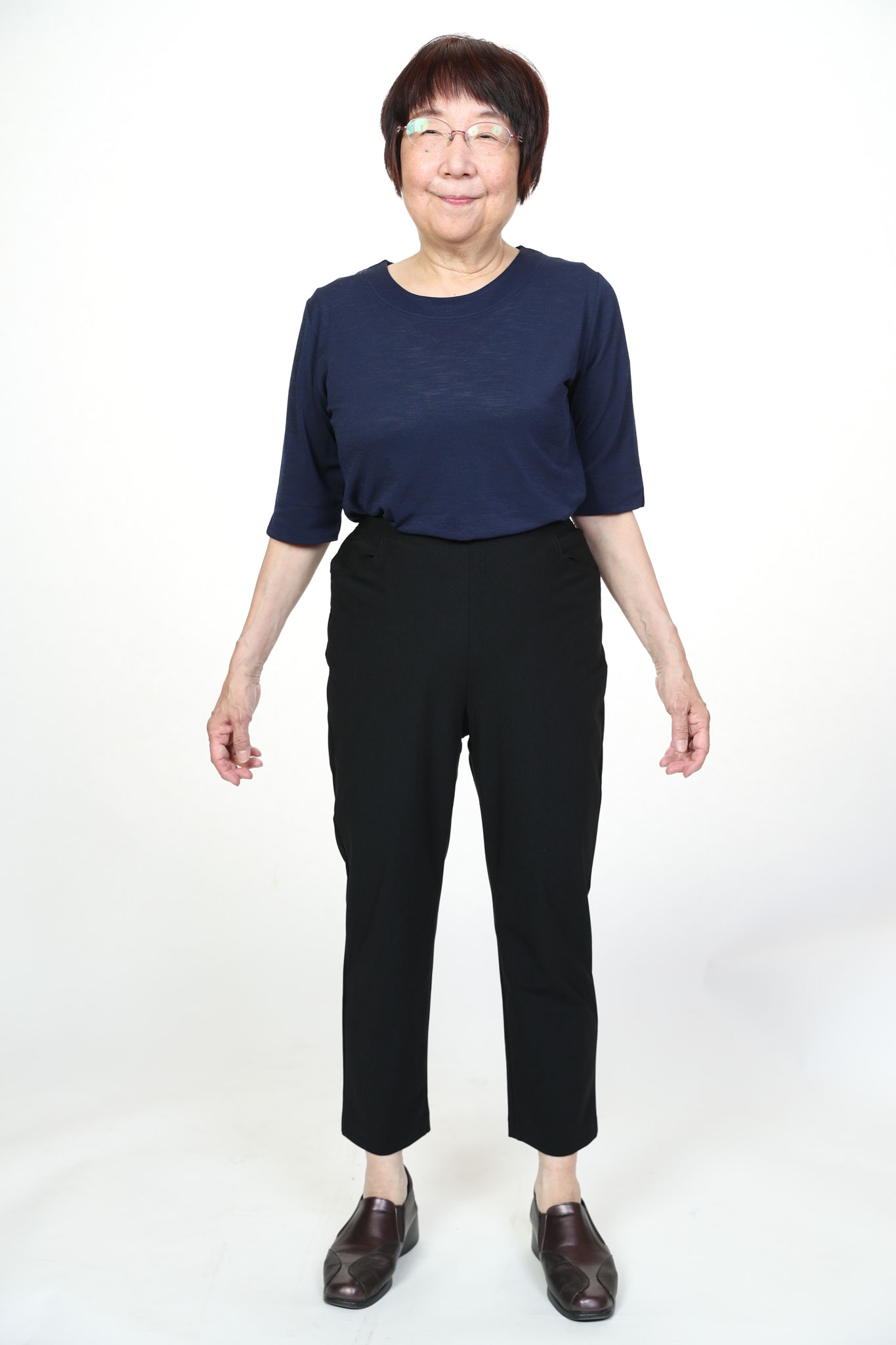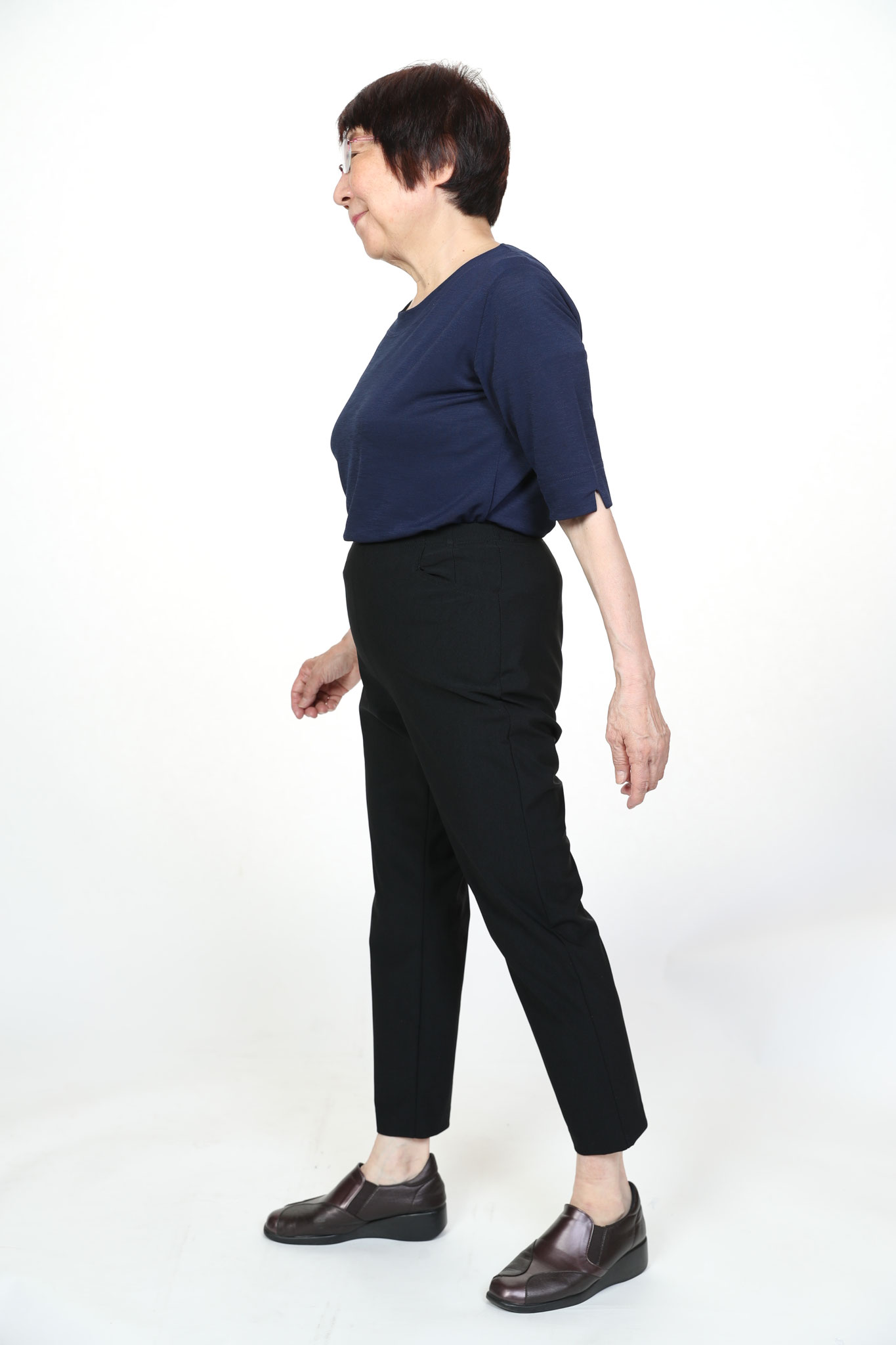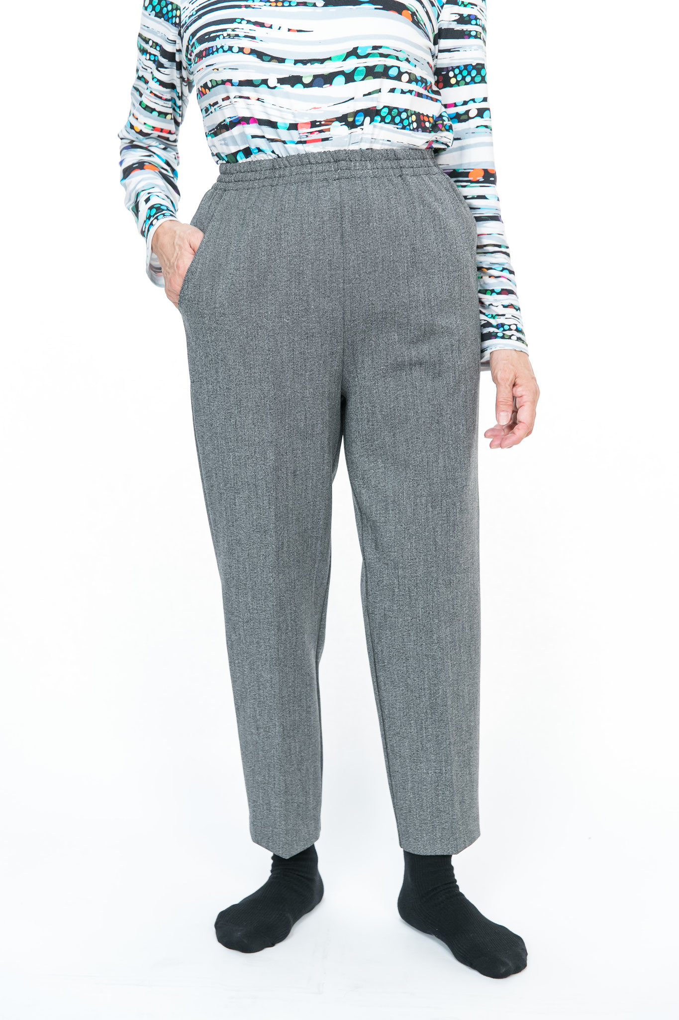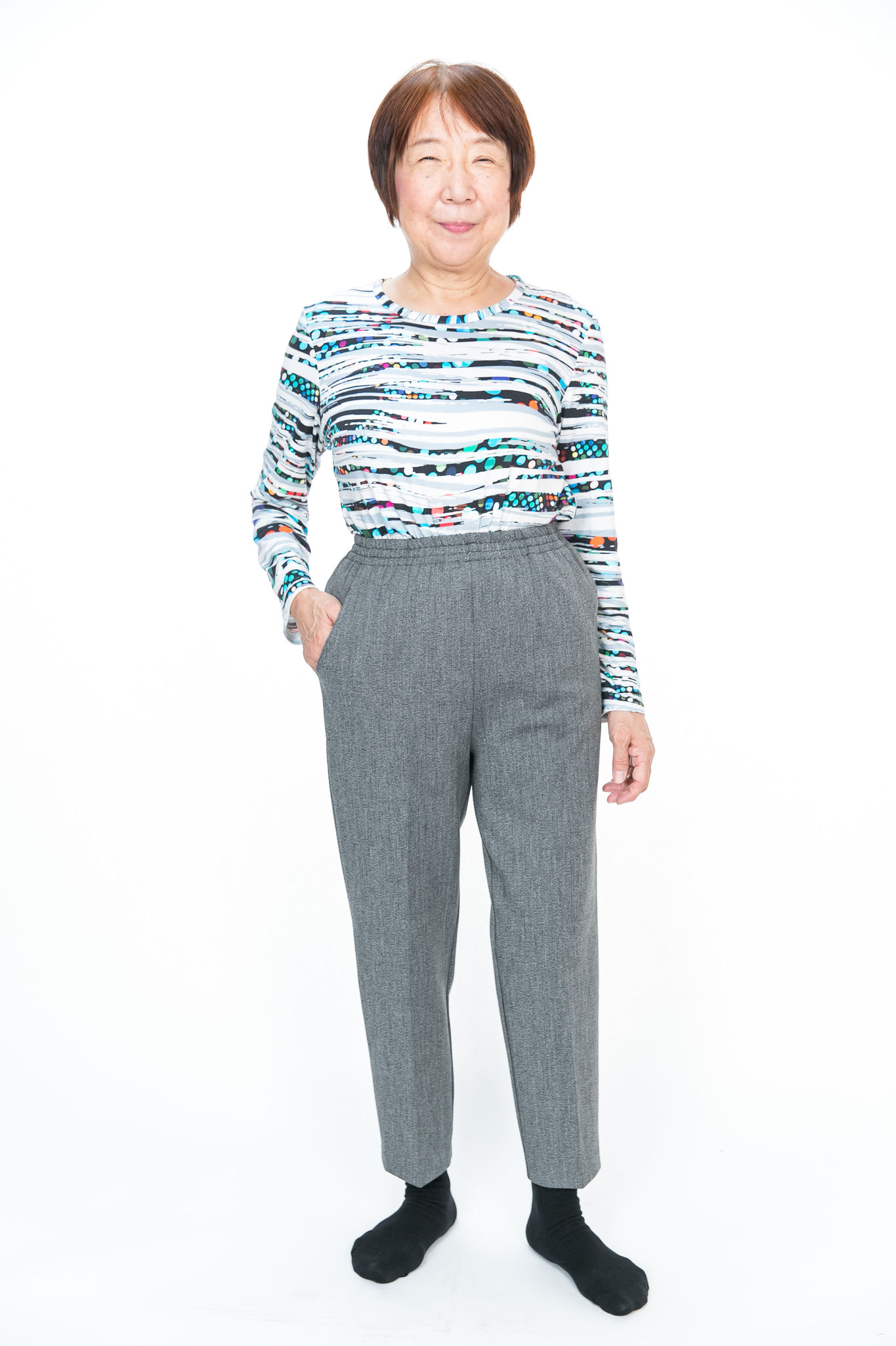 シニア向け丈詰め不要寸パンツ。